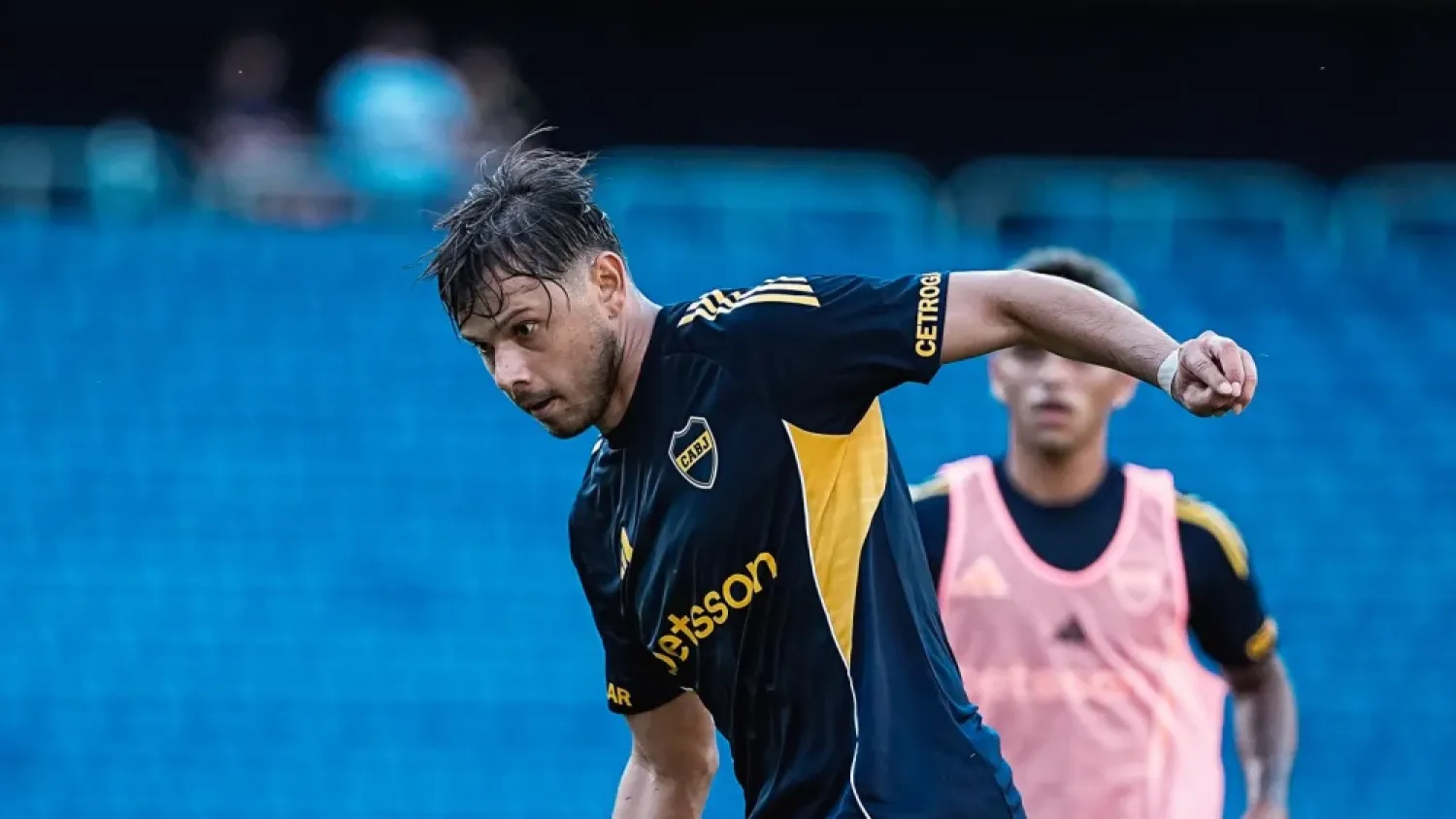 El delantero paraguayo de Boca Juniors, Ángel Romero, volvió a entrenar a la par de sus compañeros tras superar la molestia muscular sufrida en el aductor derecho.