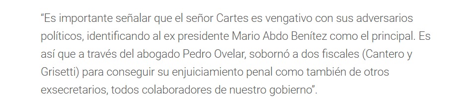 ASUNCIÓN- El portal estadounidense “Las Américas” reveló documentos confidenciales del Departamento de Estado que confirman lo que veníamos denunciando: la alianza entre el ahora exembajador Marc Ostfield y el entonces presidente Mario Abdo Benítez, centrada en una campaña de persecución contra el exmandatario Horacio Cartes y su familia. Al igual que en Israel, donde se desmintieron los relatos s