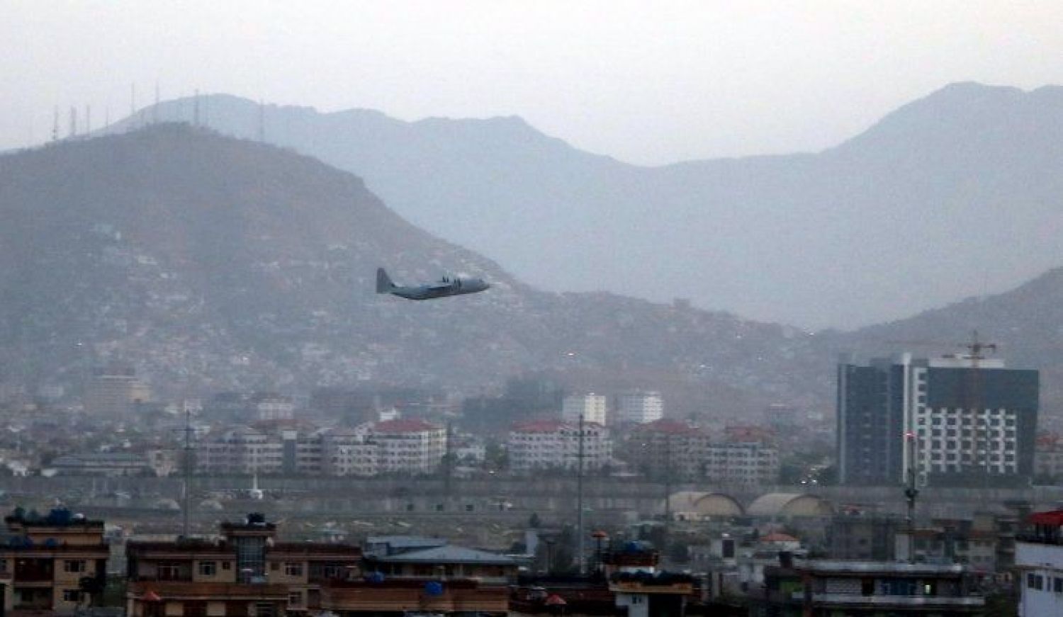 Cazabombarderos de Estados Unidos están sobrevolando Kabul para garantizar la seguridad en el aeropuerto de la capital, desde donde se está evacuando a ciudadanos estadounidenses y a sus colaborado...