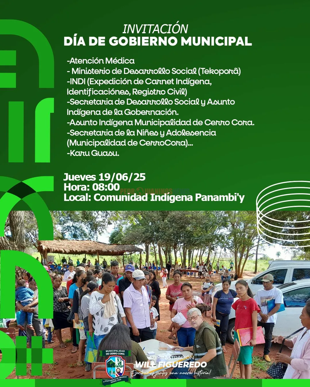 📍 La Municipalidad de Cerro Corá, administración Will Figueredo, invita a todos los residentes de la zona a participar del Día de Gobierno Municipal, que se llevará a cabo este jueves 19 de junio ...