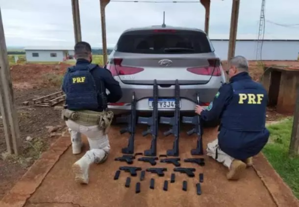 Cuatro fusiles calibre 7,62 y siete pistolas 9 milímetros, así como siete cargadores de pistolas, fueron incautados por la PRF (Policía Rodoviaria Federal ) el lunes (27) en la BR-463, en Ponta Por...