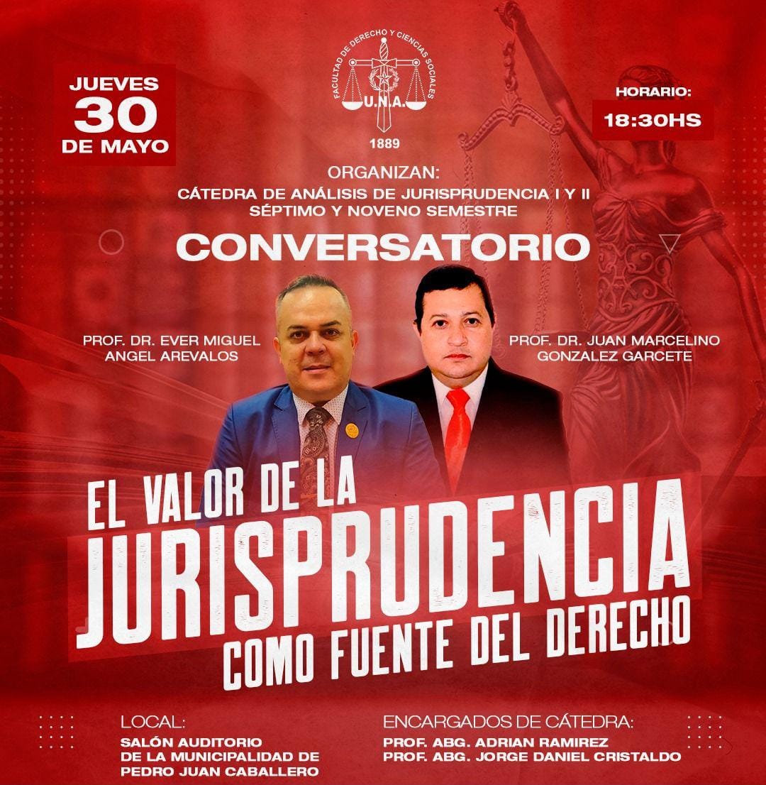 PEDRO JUAN CABALLERO. Para este jueves 30 de mayo, se llevará a cabo en el salón auditorio de la Municipalidad, un conversatorio sobre "El valor de la jurisprudencia como fuente del Derecho", organ...