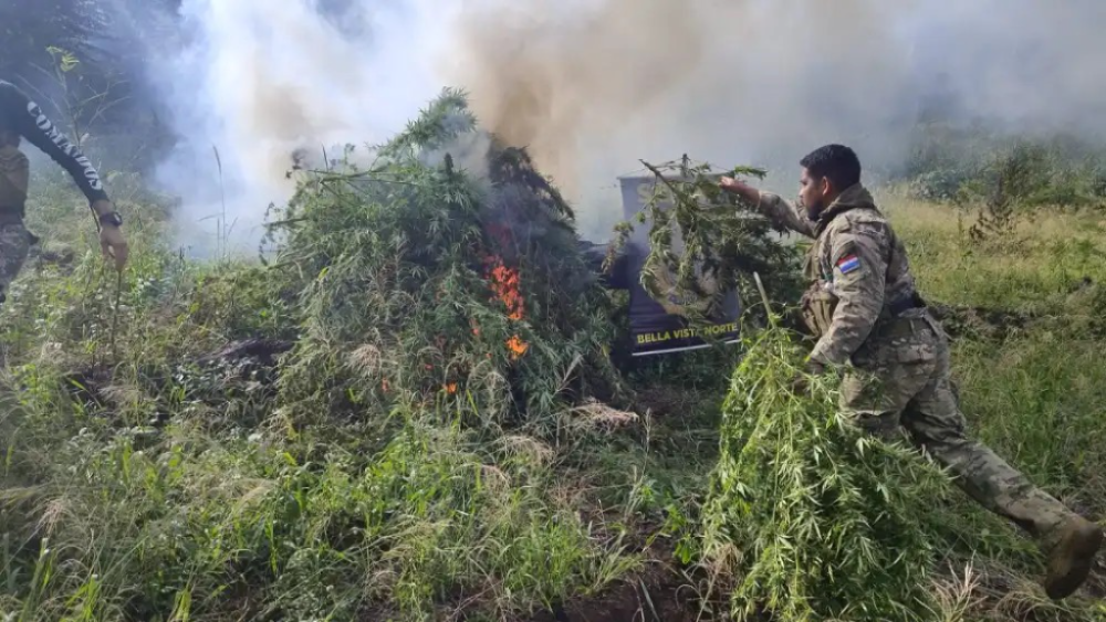 Agentes de la Secretaría Nacional Antidroga (Senad), de la regional 10 de Bella Vista Norte, con acompañamiento del Ministerio Público procedieron a la la destrucción de 5.400 kilos de marihuana oc...