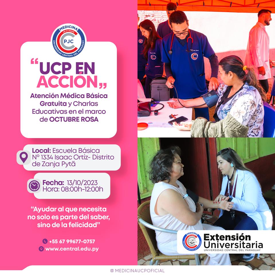 ZANJA PYTÍ: Para este viernes 13 de octubre, se anuncia la presencia en esta ciudad de la Unidad Móvil de Salud de la Universidad Central del Paraguay, filial Pedro Juan Caballero dando continuidad...