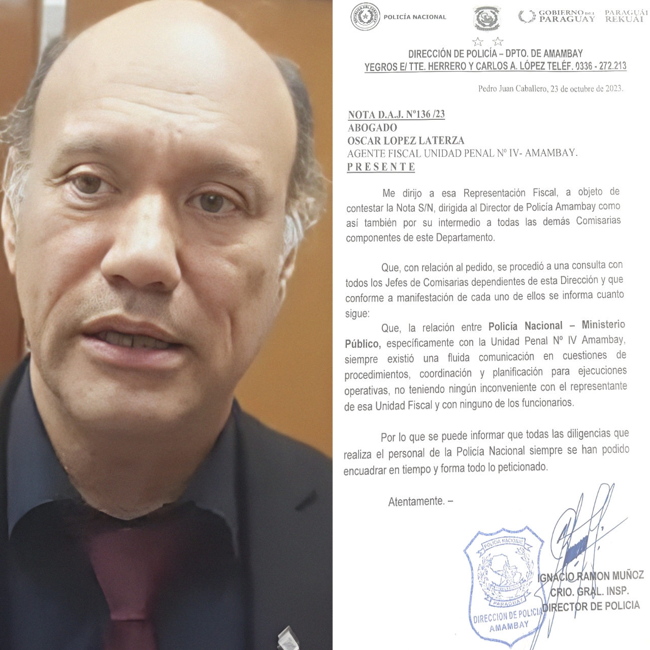 El Agente Fiscal Abg. Oscar López Laterza de la unidad penal 04 de Pedro Juan Caballero desmintió las acusaciones que hicieron los asistentes fiscales.