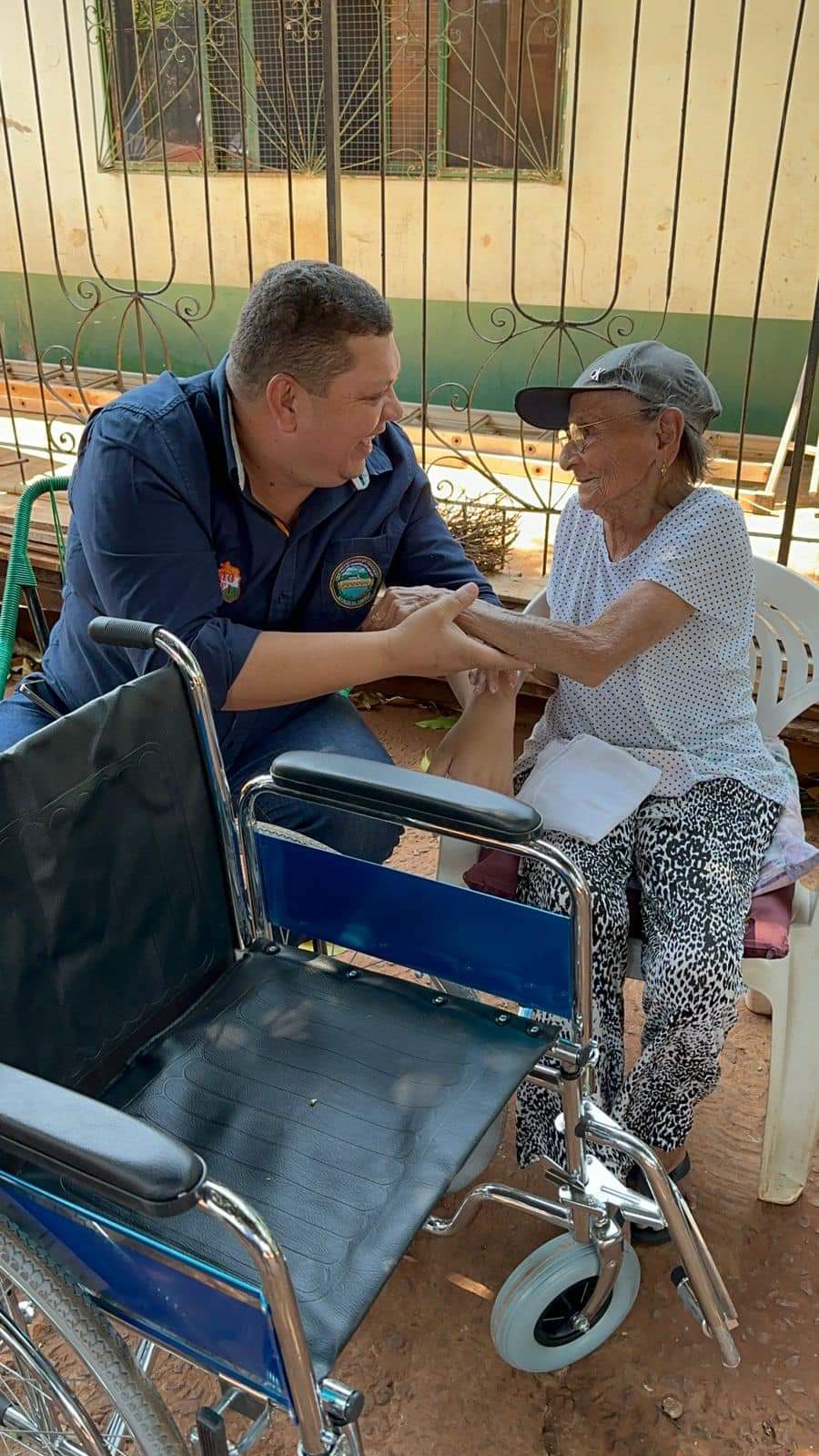 El Gobernador de Amambay, Juancho Acosta, muestra su compromiso con la mejora de la calidad de vida y movilidad de los ciudadanos de la región al entregar una silla de ruedas a Doña Andresa Núñez, ...